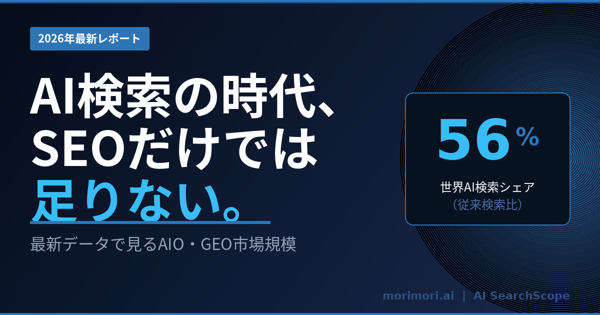 AI検索の利用規模はすでに世界の従来検索の56%相当。GEO市場はCAGR45.5%で急拡大中。最新データでAIO・GEO市場の現状と企業が取るべき対策を解説します。